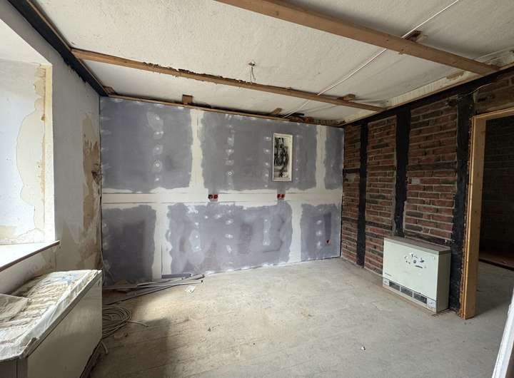 - Vorderhaus links ca. 65 m² Wohnfläche, fast einzugsbereit mit Restarbeiten: 3 Zimmer, Bad in Planung und zusätzlichen 2 Kellerräumen mit Naturboden
