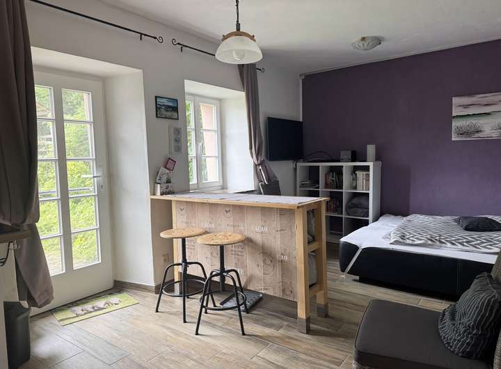 Der dreiseitig umbaute, ehemalige Bauernhof mit romantischem Innenhof und vorgelagerten Obstgarten befindet sich mitten im Dorf Niederehe und ist durch eine öffentliche Straße gut erreichbar. Das wunderbare Anwesen liegt oberhalb der Klosterkirche auf einer Anhöhe und bietet wunderbare Ausblicke ins Grüne..