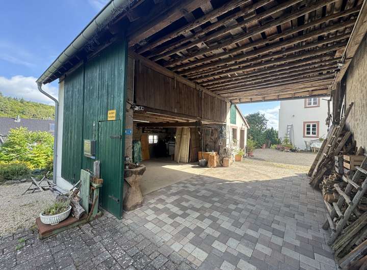 - Tordurchfahrtshaus mit Werkstatt, Stellplätzen und Abstellmöglichkeiten.