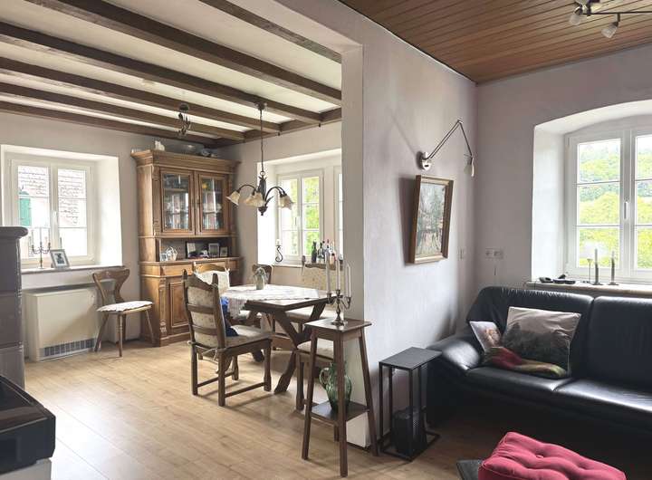 - Haupthaus ca. 98 m² Wohnfläche und zusätzlicher Nutzfläche in Kellerraum und Spitzboden, bezugsfertig, bis 2015 komplett erneuert : 4 Zimmer, 2 neue Bäder, Gäste-WC