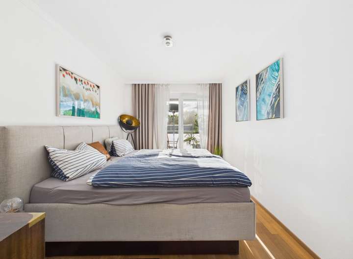 Das 2014 errichtete Gebäude ist Teil einer gepflegten Wohnanlage mit parkähnlichem Innenhof und überzeugt durch hochwertige Bauweise und moderne Technik. Die Wohnung liegt in der 4. Etage und besticht durch einen durchdachten Grundriss: Herzstück ist der großzügige Wohn- und Essbereich mit knapp 30 m², umlaufenden Deckenspots und direktem Zugang zum beeindruckenden Süd-West-Balkon. Mit über 22 m² Fläche, Sichtschutz und Glasüberdachung lässt er sich als Lounge-, Ess- und Grillbereich gleichermaßen nutzen – ein echtes Highlight für Sonnenliebhaber und Genießer.