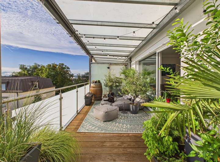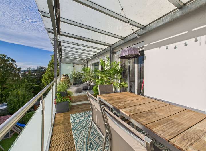 * Riesiger Süd-West-Balkon mit ca. 22,8 m², überdacht und mit Sichtschutz