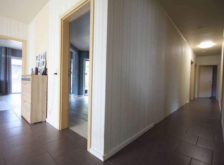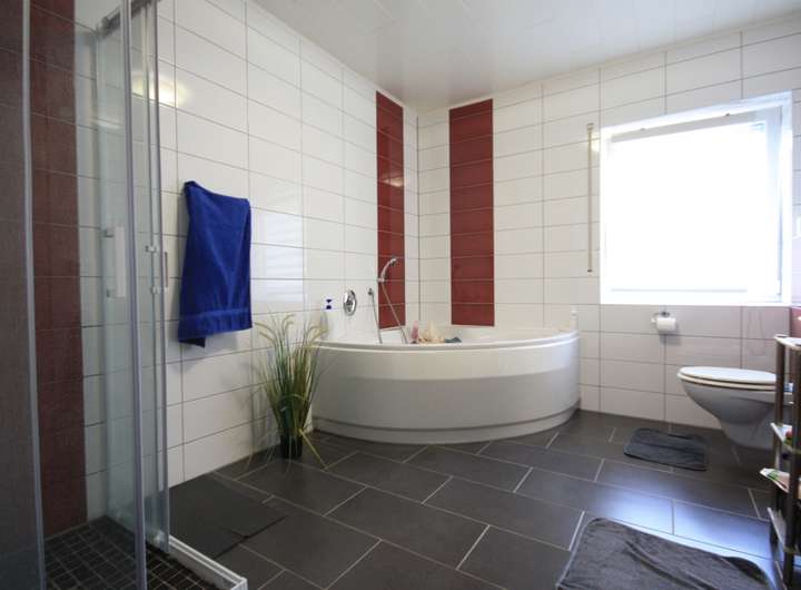 Die Heiz- und Komforttechnik umfasst eine effiziente Fußbodenheizung, eine moderne Be- und Entlüftungsanlage sowie eine HWR, die praktischen Platz bietet. Das Bad verfügt über Dusche und Eckbadewanne; das Gäste-WC ergänzt den täglichen Komfort. Ein eigener Blick ins Grüne sowie kompletter Garten- und Grundstückseinzäunung garantieren Privatsphäre.