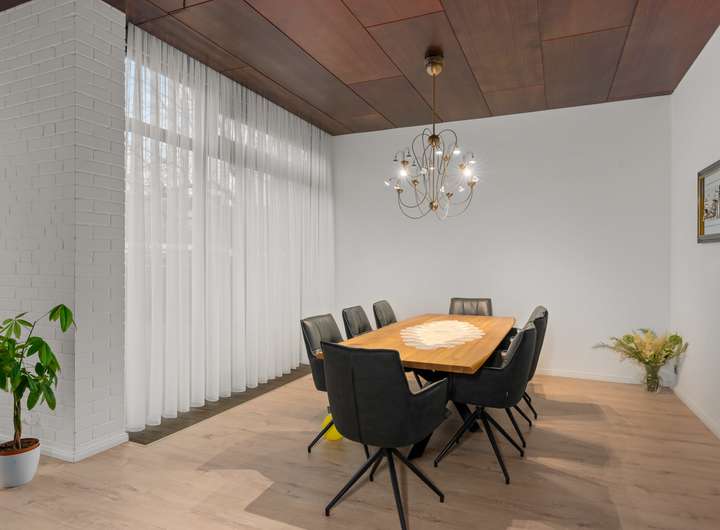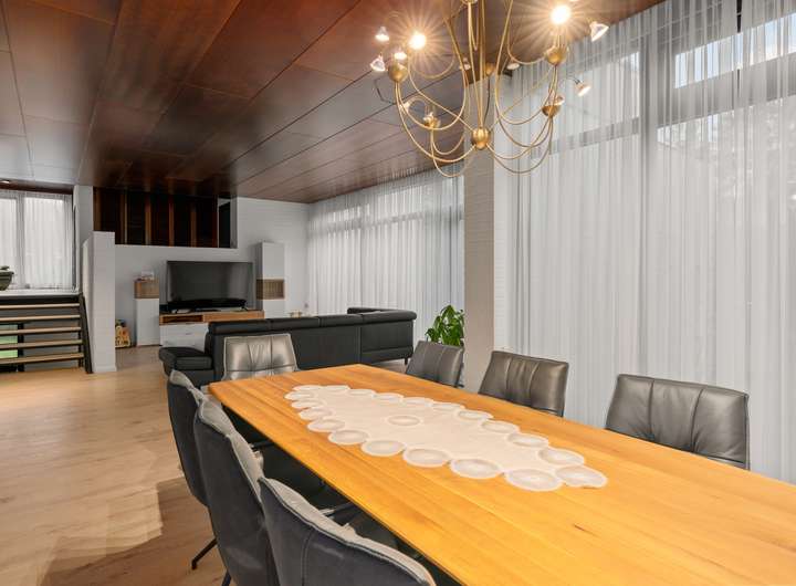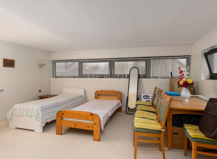 Dieser ansprechende Bungalow bietet Ihnen ein großzügiges Wohngefühl auf einem weitläufigen Grundstück. Mit einer Gesamtwohnfläche von 229,06m², die sich über ein Hochparterre und ein Souterrain verteilt, haben Sie viel Platz zur individuellen Gestaltung. Die interessante Raumaufteilung sorgt dafür, dass Sie sowohl gemütliche Rückzugsorte als auch einladende Bereiche für gesellige Zusammenkünfte schaffen können. Der Wohn-/Essbereich im Hochparterre mit einer Fläche von 67,41m² bildet hierbei sicherlich das Herzstück des Hauses. Große Fenster sowie helle Böden in Holzoptik vermitteln ein angenehmes Wohngefühl. Von hier aus gelangen Sie auch direkt auf die große Terrasse (25,24m²), auf der Sie sonnige Tage genießen und laue Sommerabende bei einem Glas Wein ausklingen lassen können. Die helle Küche (11,66m²), die direkt an den Wohn-/Essbereich grenzt, sorgt für eine funktionale Raumaufteilung und ermöglicht es Ihnen, auch beim Kochen schnell und unkompliziert mit Ihrer Familie oder Gästen kommunizieren zu können. Direkt neben der Küche befindet sich ein separater Wohnbereich mit eigenem Flur (1,70m²), Bad/WC (3,73m²) sowie einem großzügigen Schlafbereich (15,52m²), der z.B. Ihren Gästen viel Privatsphäre bietet oder sich auch als idealer Rückzugsort für Teenager eignet. Hier ist man ungestört. Die „Galerie“, auf der sich zwei weitere Zimmer des Hochparterres befinden, erreichen Sie über eine kleine Treppe. Diese Raumaufteilung lässt den oberen Bereich separat aber nicht abgeschieden erscheinen. Die Zimmer verfügen über sehr geräumige Größen von 20,65m² und 24,46m² und sind vielseitig nutzbar, sei es als Schlaf-, Arbeits- oder Spielzimmer. Auch der hier vorhandene große Flur (16,22m²) mit direktem Ausgang zum Balkon (2,41m²) vermittelt ein ansprechend offenes Wohngefühl. Abgerundet wird dieser Wohnbereich durch das Tageslichtbad (7,47m²) mit Badewanne und Dusche sowie Doppelwaschbecken. Zentral im Haus gelegen befindet sich auch die Treppe ins Souterrain. Dort angekommen erwartet Sie ein großer Hauswirtschaftsraum (20,65m²) mit Waschmaschinenanschluss, welchen Sie durch einen weiteren kleinen Raum (3,84m²) erreichen. Kombiniert bieten diese beiden Räume viel Stauraum und ermöglichen eine komfortable Unterbringung vielerlei Dinge. Der Heizungsraum mit der Ölheizung befindet sich direkt nebenan. Hervorzuheben ist jedoch eines der beiden Zimmer, welches mit einer Größe von 25,30m² zusätzlichen vielseitig nutzbaren Wohnraum bietet. Die große Fensterzeile lässt viel Tageslicht herein und die lichte Raumhöhe von 2,27 m unterstreicht die Größe und Helligkeit des Raumes. Der zweite Raum dieser Etage verfügt über eine Arbeitsfläche und ein Waschbecken und eignet sich somit ausgezeichnet als Ergänzung zur Küche im Hochparterre, sollten sich nicht alle Küchengeräte dort unterbringen lassen. Hier könnten Sie aber auch Ihre Gartengeräte verstauen, denn der Raum bietet einen Ausgang in den Garten. Hier sind Ihren Vorstellungen keine Grenzen gesetzt. Das große Grundstück bietet Ihren Kindern reichlich Platz um zu spielen und sich auszutoben. Ein eigener Spielbereich oder ein kleiner Garten für eine erstes gärtnern sind hier durchaus realisierbar. Lassen Sie Ihren Ideen freien Lauf! Haben wir Ihr Interesse geweckt? Dann vereinbaren Sie doch gleich einen Besichtigungstermin!