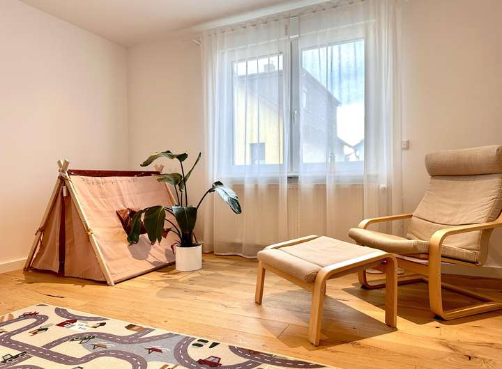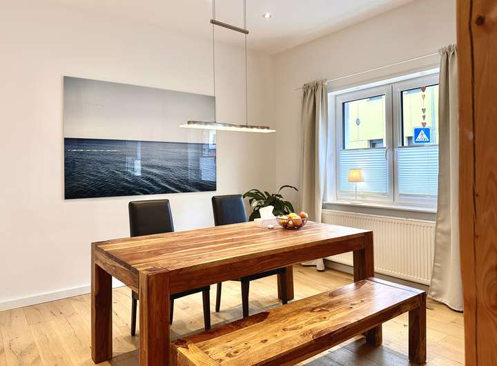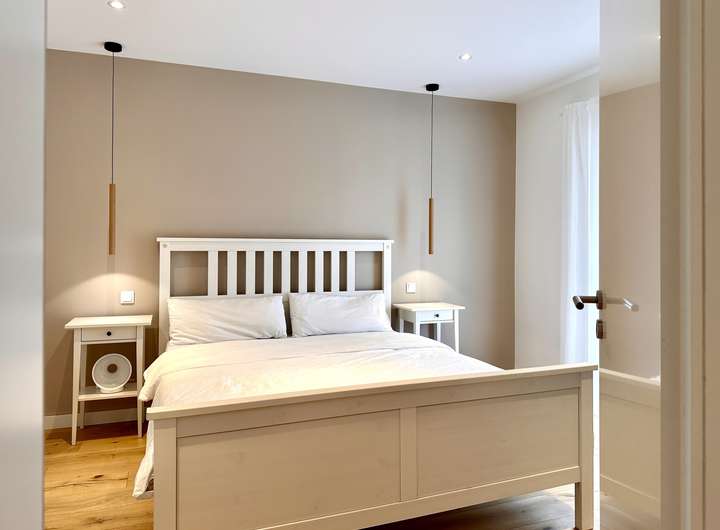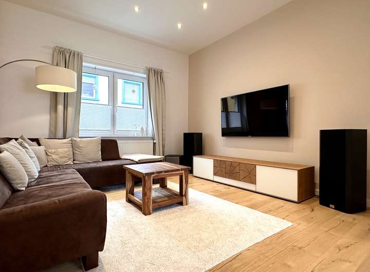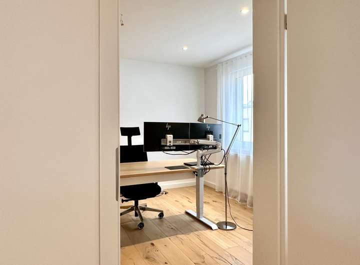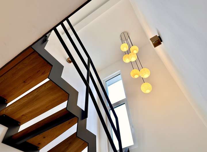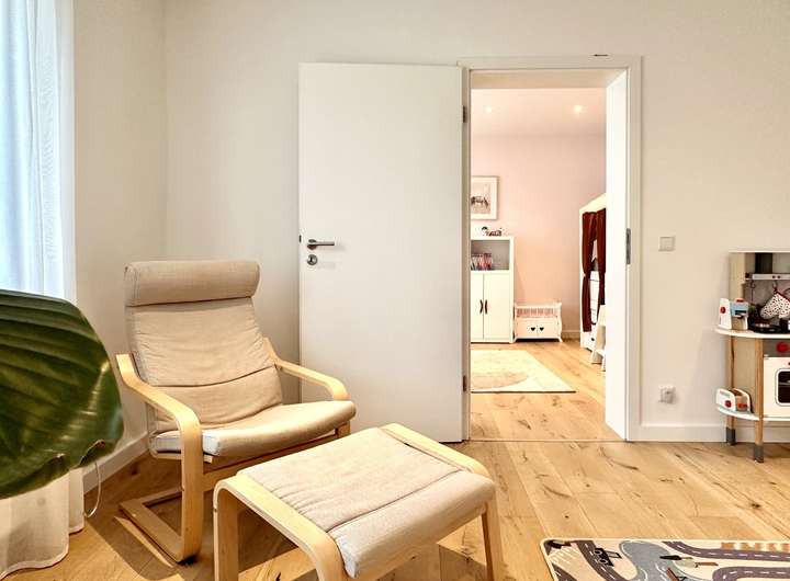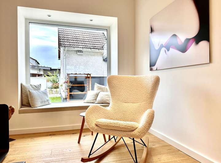 Im Inneren erwarten Sie insgesamt acht Zimmer, darunter vier helle Schlafzimmer sowie zwei stilvolle Badezimmer mit Badewanne und Dusche. Dreifach verglaste Fenster garantieren ruhige Nächte und ein angenehmes Wohnklima. Ein Balkon, eine Terrasse und der eigene Garten schaffen zusätzliche Rückzugsorte im Freien.