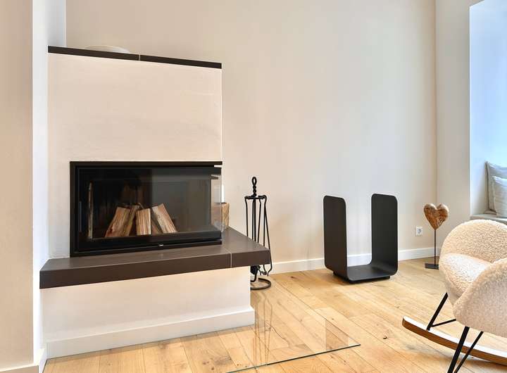 Das Herzstück des Hauses ist der offene Wohn- und Essbereich mit ansprechenden hohen Decken. Hier sorgt ein energiesparender Grundofen für behagliche Stunden und verleiht dem Ambiente eine besonders gemütliche Atmosphäre.