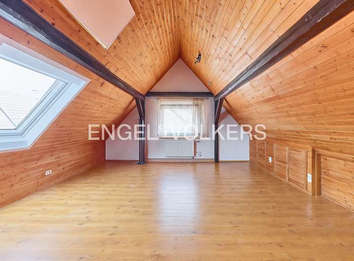 Im Dachgeschoss befindet sich ein gemütliches ausgebautes Studio mit Dachfenster – perfekt als Kinderzimmer, Gästezimmer oder Arbeitsbereich nutzbar.