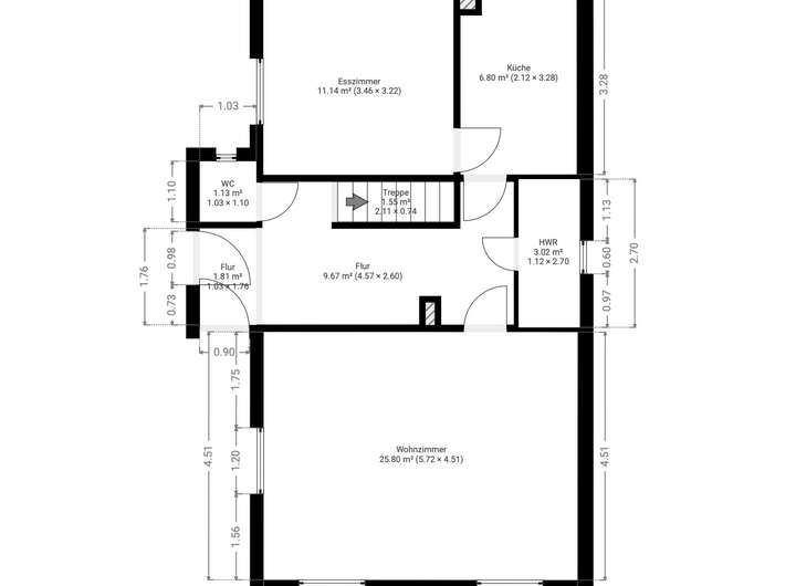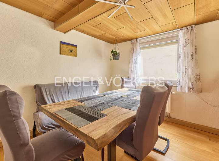Im Erdgeschoss erwartet Sie ein großzügiges Wohnzimmer, das sich hervorragend als gemütlicher Rückzugsort eignet. Die moderne Küche geht fließend in das angrenzende Esszimmer über, was eine einladende Atmosphäre für gemeinsame Mahlzeiten schafft. Ein praktischer Abstellraum mit Anschluss für Waschmaschine sowie ein Gäste-WC runden das Raumangebot auf dieser Etage ab.