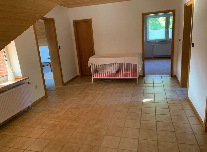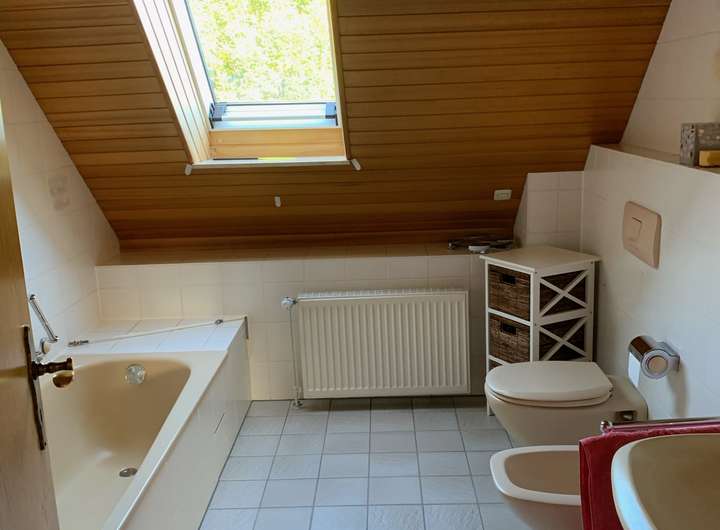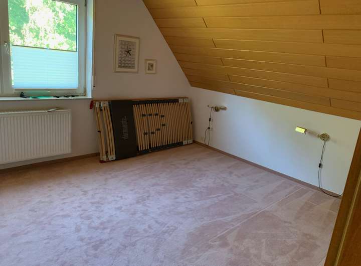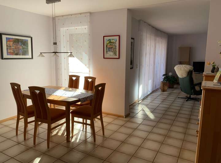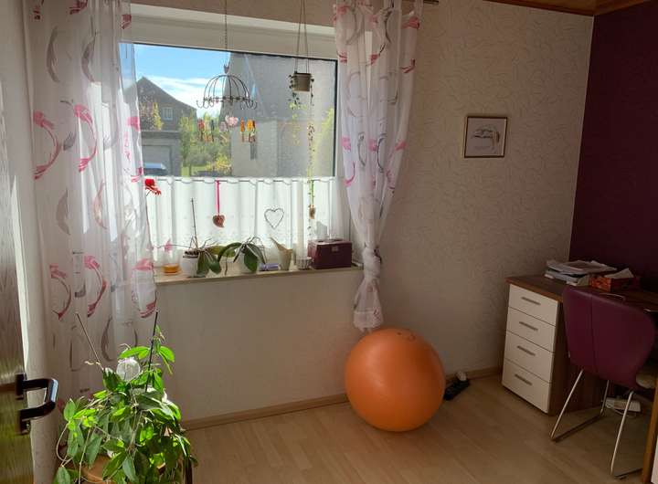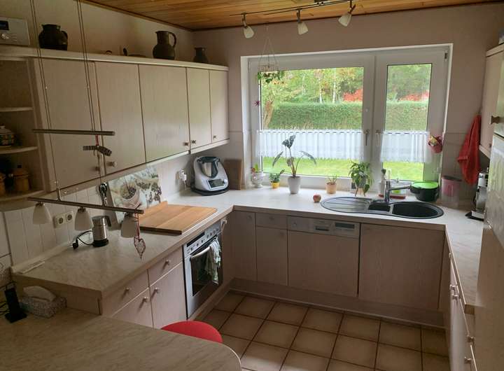 Bei dieser ansprechenden Immobilie handelt es sich um ein zweistöckiges Mehrfamilienhaus. Das Haus besteht aus zwei separaten Wohneinheiten, eine im Erdgeschoss (EG) mit 4,5 Zimmern und eine im Dachgeschoss (DG) mit 2,5 Zimmern. Zudem verfügt das Haus über einen großen Keller (KG) mit Tageslichteinfall. Der Keller ist trocken und kann ggf. auch als zusätzlicher Wohnraum (z.B. Büro) genutzt werden. Im Erdgeschoss befindet sich ein großzügiger Wohn- und Essbereich (Diele) sowie ein Elternschlafzimmer mit angeschlossenem Bad (Badewanne, Dusche und Bidet) und 2 Kinderzimmer. Die Kinderzimmer verfügen über eignes Bad mit Dusche, welches auch als Gäste-WC dient. Die Einbauküche bietet Platz für einen eigenen Esstisch und verfügt über aktuelle Einbaugeräte (Kochfeld, Backofen, Geschirrspüler, Kühlschrank). Im Dachgeschoss befindet sich ebenfalls ein großzügiger Wohn- und Essbereich (Diele) sowie ein Schlafzimmer. Das von der Diele zugängliche Bad verfügt über eine Badewanne, eine Dusche und ein Bidet. Rechts und links neben der geräumigen Küche befinden sich zwei kleine Abstellkammern. Insgesamt ist die Dachgeschosswohnung in einem sehr gepflegten Zustand und könnte mit der neuwertigen Einbauküche (Kochfeld, Backofen, Geschirrspüler, Kühlschrank) direkt vermietet werden. Das 1985 erbaute Gebäude wird mit einer neu eingebauten Gasheizung beheizt und verfügt im Erdgeschoss über eine Fußbodenheizung. Eine große Garage gehört ebenfalls zum Haus. Die 753 Quadratmeter des dazugehörigen Grundstücks bieten genügend Platz zum Gärtnern, Spielen, Sonnenbaden und Entspannen. Das gesamte Grundstück inklusive Haus steht ab dem 01.12.2025 für einen Preis von 489.000 Euro zum Verkauf und kann ab sofort besichtigt werden.