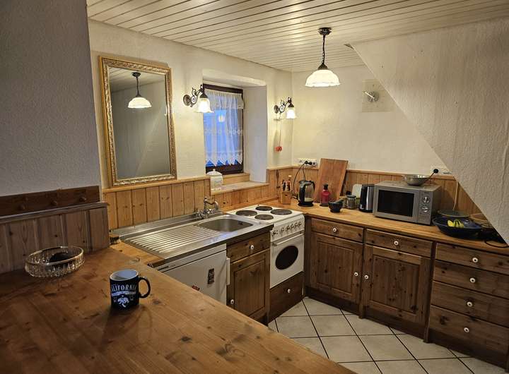 Bei dem Bauernhaus handelt es sich um ein sogenanntes Einhaus, bei sich Wohnbereich und Stall/Scheune, längs aneinandergefügt, unter einem Dach befinden. Der Wohnbereich hat auf 2 Stockwerke verteilt eine Fläche von 126 m². Das Wohnhaus besitzt ein Kurzwalmdach, was eine bessere Raumausnutzung erlaubt. Hier finden sich 7 Zimmer (eines davon ist ein Durchgangszimmer), Küche, Bad und Toilette. Die Decken haben eine durchschnittliche Höhe von 2,30 m. Die Grundfläche des Stallgebäudes beträgt 42 m².