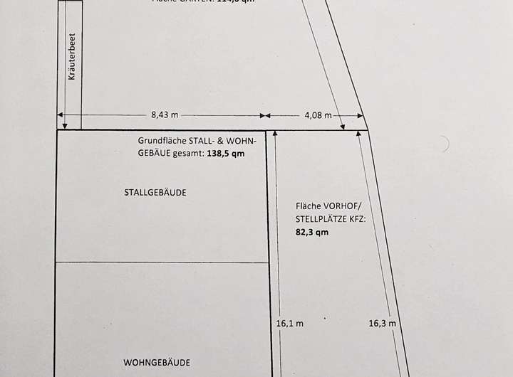 Der Vorhof bietet auf 82 m² ausreichend Stellfläche für mehrere Fahrzeuge. Zur Zeit ist er hinter zwei (zum Grundstück gehörenden) PKW-Stellplätzen durch ein Holztor unterteilt, was für Hundebesitzer sehr vorteilhaft ist.