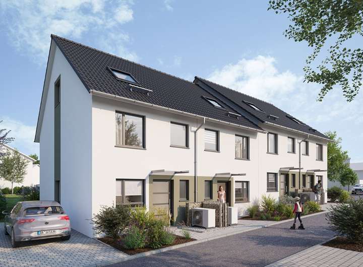 Bei diesem Angebot handelt es sich um eine Reihenhauskette von vier Häusern. Ideal für einen Kapitalanleger, der in neuwertige Immobilien investieren möchte. Die Häuser werden in Stein auf Stein Bauweise hergestellt und voll ausgebaut und schlüsselfertig übergeben. Sie sind nach Fertigstellung sofort bezugsfertig. Baupartner für die Erstellung der Häuser ist die Firma Weisenburger GmbH.