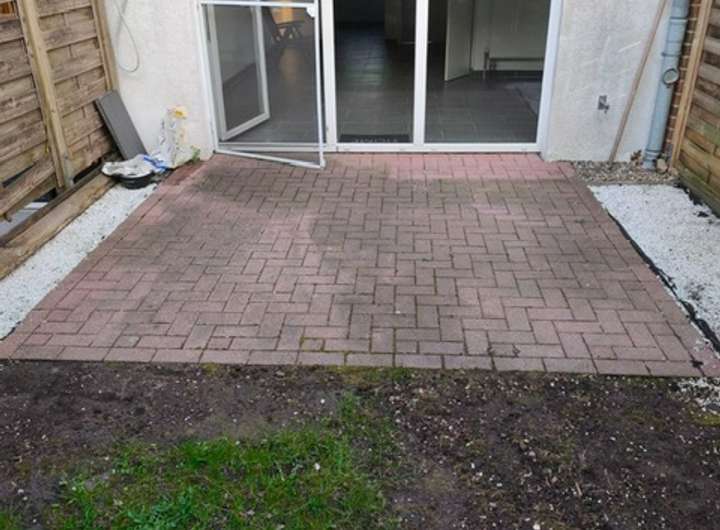 Der pflegeleichte Garten ist durch Trennwände und Bepflanzungen zu den Nachbarn sichtgeschützt.