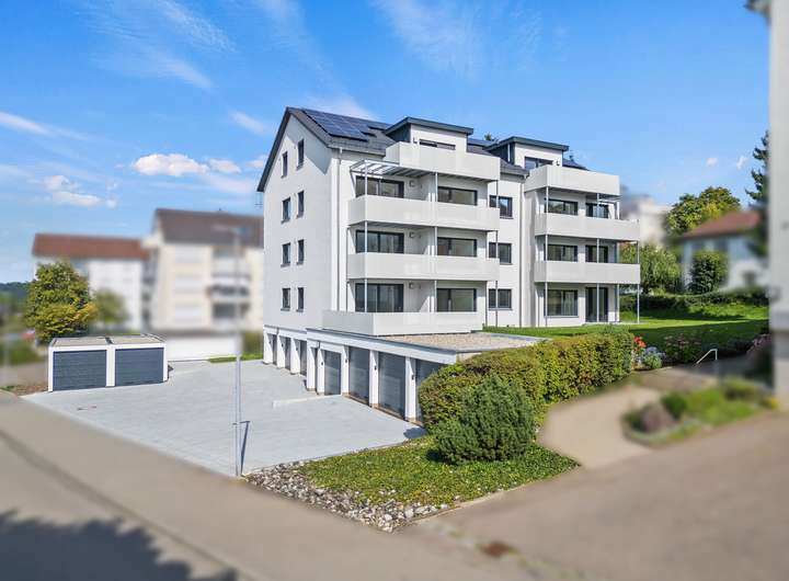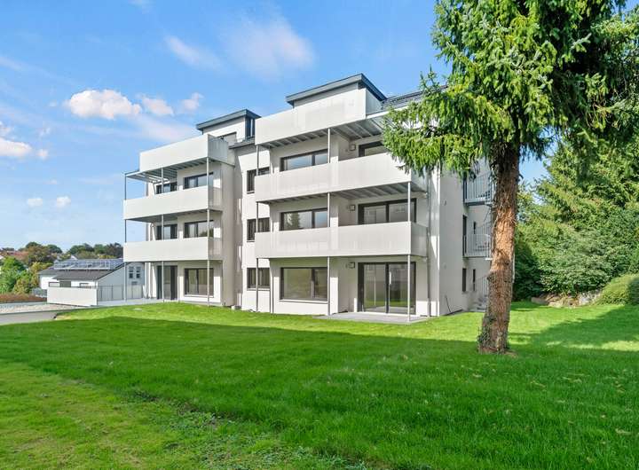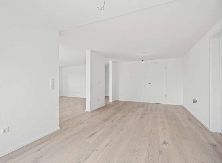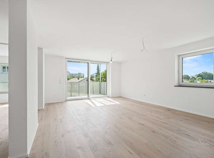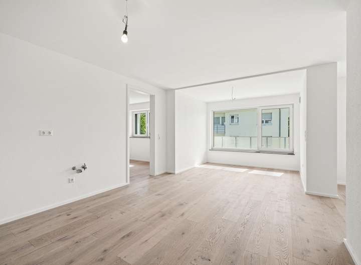 Die 4,5-Zimmer-Wohnung überzeugt mit einem großzügigen Wohn-, Ess- und Kochbereich, zwei Schlafzimmern, einem flexiblen Büro- oder Gästezimmer, einem modernen Bad sowie einem Gäste-WC. Große Fensterflächen lassen viel Tageslicht herein und schaffen eine helle Wohnatmosphäre. Der Balkon erweitert den Wohnbereich und bietet zusätzlichen Freiraum im Grünen.