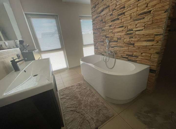 Das gesamte Haus ist mit Fußbodenheizung ausgestattet und bietet durch elektrische Rollläden, Fliegengitter, Smart-Home-Technik sowie hochwertige Vinyl- und Natursteinböden ein modernes Wohngefühl. Eine Photovoltaikanlage mit großem Speicher sowie eine Wallbox zum Laden von Elektrofahrzeugen ergänzen die nachhaltige und zukunftsorientierte Ausstattung des Hauses. Zum Haus gehören außerdem eine Garage und zwei Stellplätze.