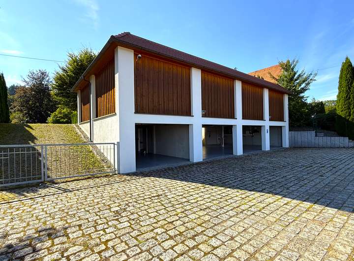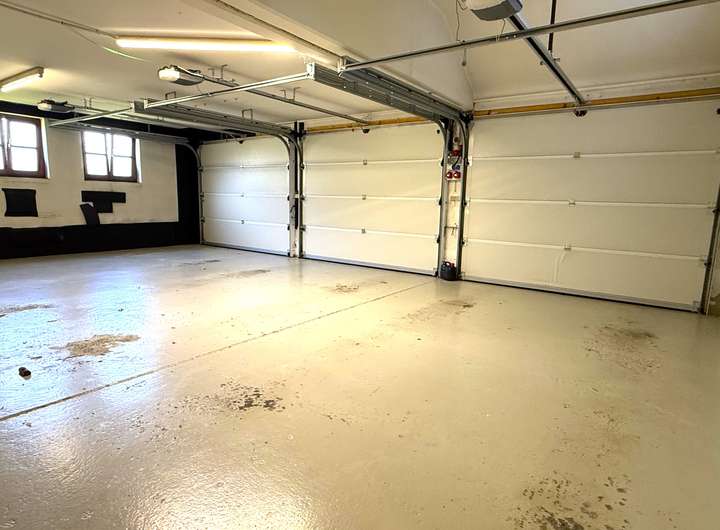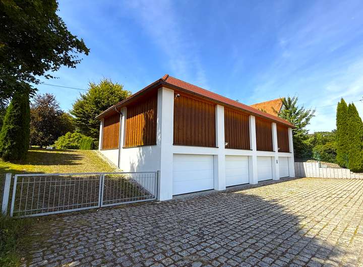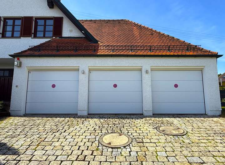 * Sieben Garagen, alle mit elektrischen Sektionaltoren