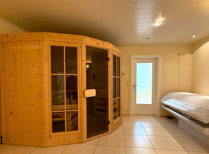 * Fitnessraum sowie eigener Spa-Bereich mit separater Terrasse, Sauna und Solarium