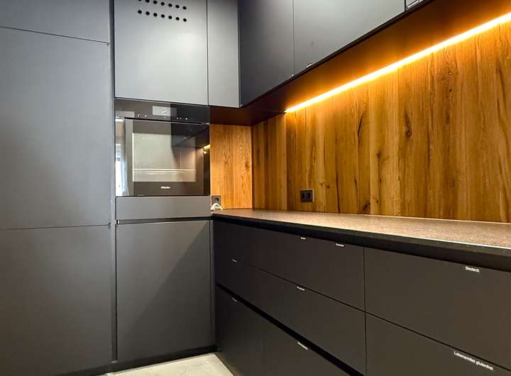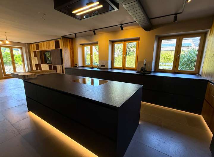 * Drei Küchen, darunter eine Vorbereitungsküche