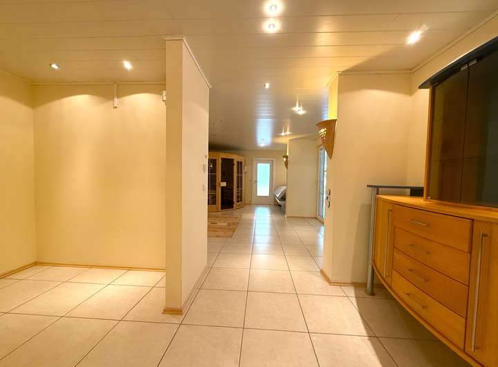 Im Souterrain unterstreicht die Villa ihren exklusiven Anspruch: Ein großzügiger Fitnessraum, ein Spa-Bereich mit Sauna, Düsendusche, WC und Ruheraum sowie eine geschützte Terrasse sorgen für Erholung auf höchstem Niveau. Ergänzt wird dieses Geschoss durch ein Heimkino, umfangreiche Lagerräume, die Haustechnik sowie einen Luftschutzbunker.