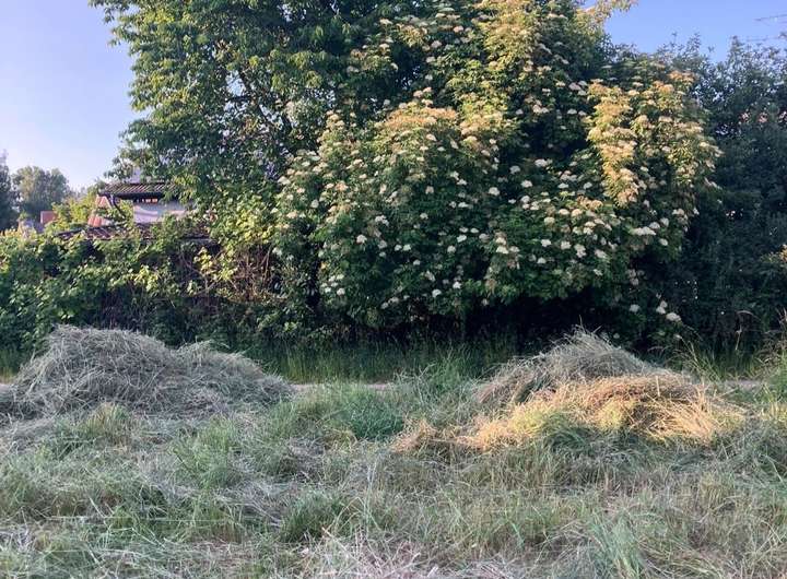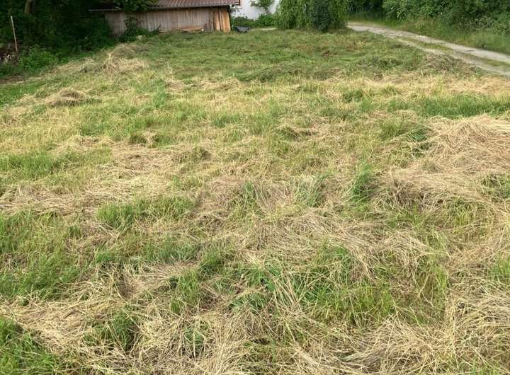 NB: Die bereits zum Teil entfernte Hecke auf dem Grundstück ist nicht an der Grenze, sondern mit in etwa 3,5m Abstand zur Grundstücksgrenze errichtet und wird entfernt. Es besteht darüber hinaus ein Geh-, Fahrt- & Leitungsrecht für den Weg nördlich neben dem Grundstück. Der Baugrund kann also auch über den Weg erschlossen werden.