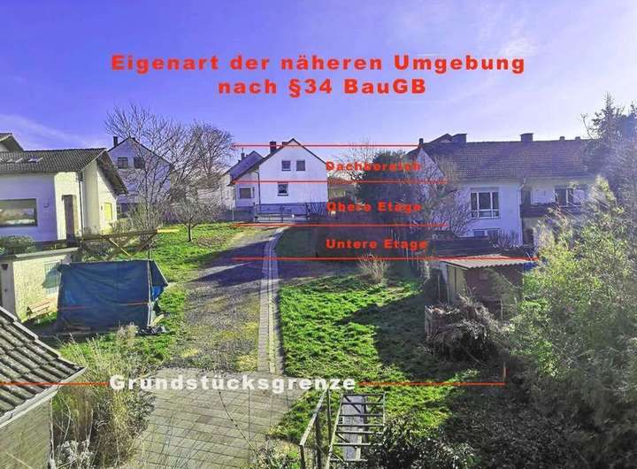 Oberer Teil eines größeren Grundstücks, Baugrundstück erschlossen. Glasfaseranschluss verfügbar. Verkehrsanbindung an Frankfurt ca.45 min.