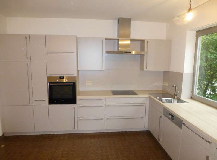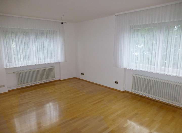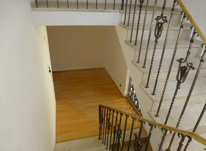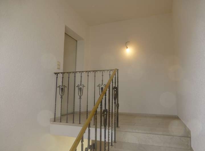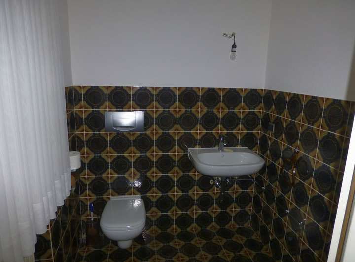 Das Erdgeschoss bietet 1 Wohnzimmer und 1 Eßzimmer mit Loggia und direktem Zugang zum Garten , 1 Einbauküche und 1 Gäste-WC.