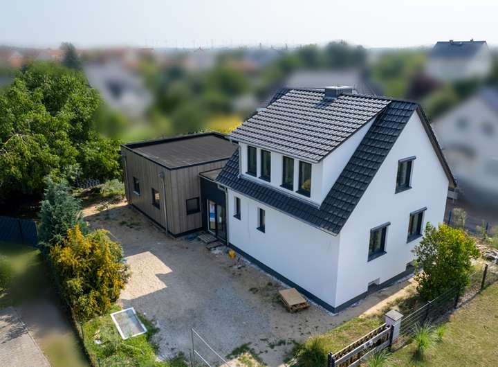 Willkommen in Ihrem neuen Zuhause in Biederitz – ein Einfamilienhaus, das modernen Wohnkomfort, stilvolle Architektur und nachhaltige Technik verbindet. Nach der Erweiterung durch einen hochwertigen Neubau in Holzrahmenbauweise präsentiert sich die Immobilie als echtes Unikat: energieeffizient, familienfreundlich und ab sofort im Erstbezug zur Miete verfügbar.