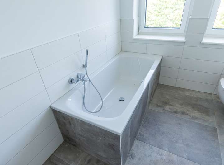 • Hochwertige Ausstattung: Vinylböden im rustikalen Eichendekor, Fliesen in moderner Steinoptik