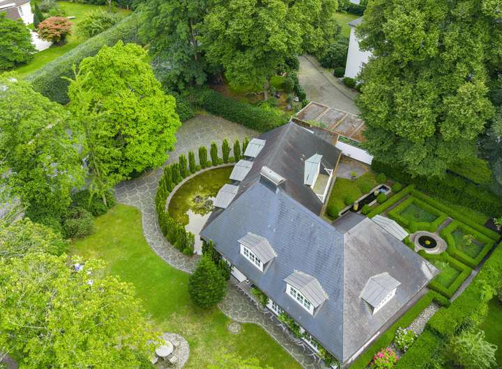 Die Villa wurde ca. 1960 / 61 im Landhausstil erbaut und ab 1999 laufend modernisiert. Das Dach wurde mit Schiefer gedeckt und von einem Europameister und einem deutschen Meister im Dachdeckerhandwerk geplant und ausgeführt, hochwertige Holzfenster wurden von der Firma Korn erneuert, die Bodenbeläge im Eingangsbereich mit Granit neu verlegt.