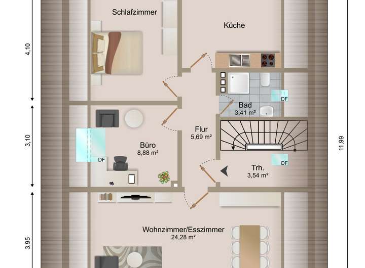Dank der Lage im Dachgeschoss genießen die Bewohner eine ruhige Wohnatmosphäre und einen schönen Ausblick.