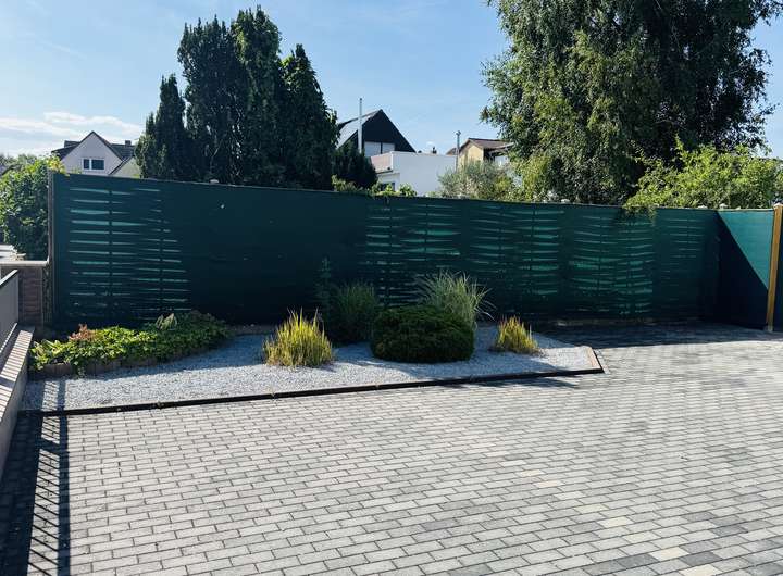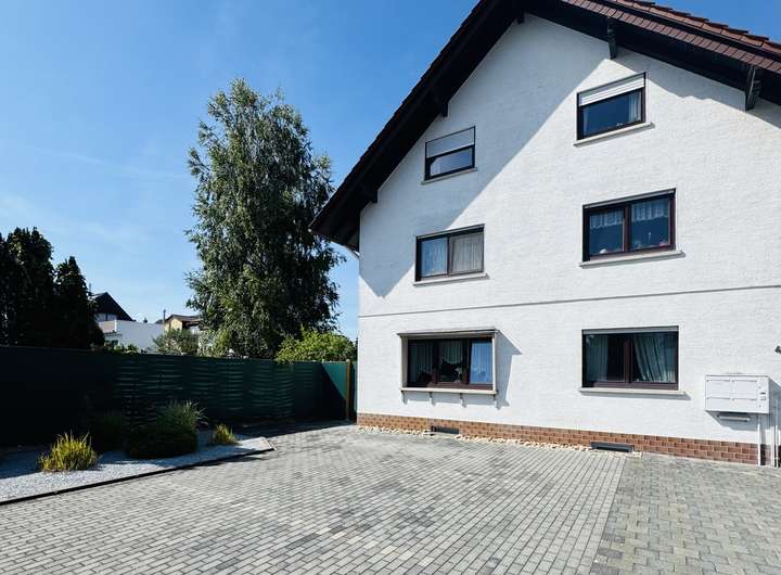 Das Grundstück ist komplett umzäunt und verfügt über einen gepflegten Hofbereich, der mit wasserdurchlässigem Öko-Pflaster ausgestattet ist. Drei Stellplätze sowie ein Carport gehören ebenfalls zum Objekt.