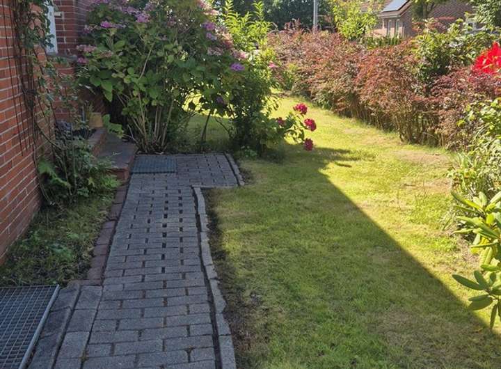 In Teilen von einer Hecke umgeben und in vielen Bereichen nicht einsehbar lässt sich der Feierabend in Ruhe genießen. Die Nachbarschaft ist nett und ruhig.