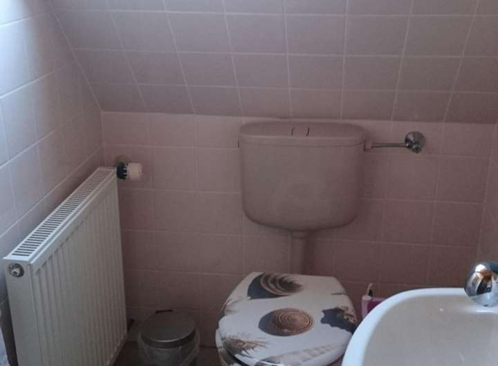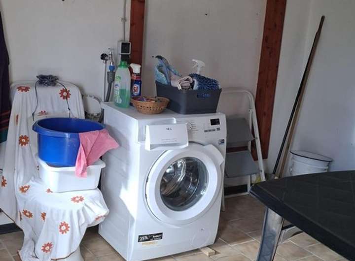 4.Wirtschaftsgebäude gefliest mit kleinem Dachboden, Waschbecken, WC und Waschmaschine für die obere Wohnung sowie Heizungsanschlüssen