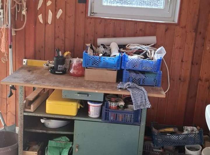 Ein separates Wirtschaftsgebäude dient zur Unterbringung von Gartenmöbeln.