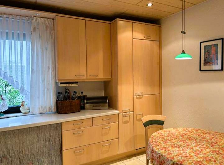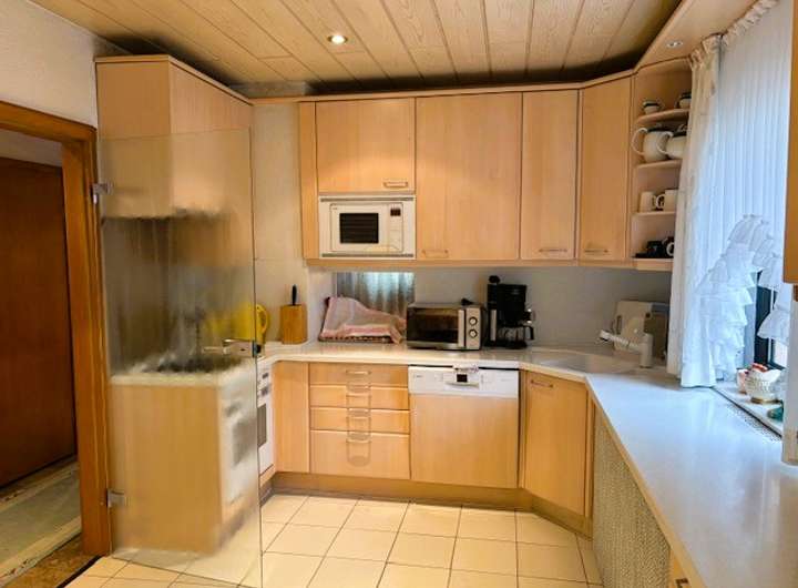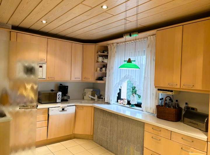 Die Küche ist sehr groß und sieht wie neu aus! Der angenehme Holzton, die vielen Schränke und Aufbewahrungsmöglichkeiten, sowie die qualitativ hochwertigen Geräte, alles ist perfekt eingepasst und für jeden neuen Eigentümer ein Plus!!!