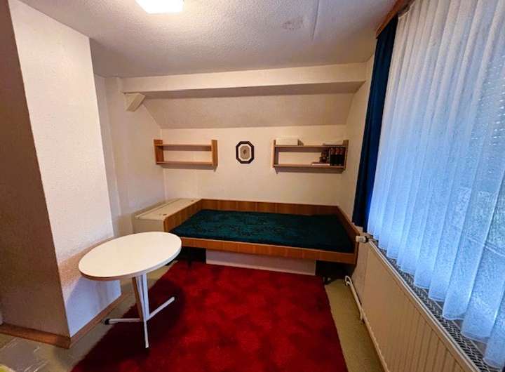 Ein weiteres Stockwerk darüber ist ausbaufähig! Hier existiert bereits ein helles Zimmer unter dem Dachgiebel, das sogar mit einem Waschbecken ausgestattet ist. Aber nebenan kann noch der gesamte Anbautrakt zu einem Stau- oder Arbeitsraum oder Gästezimmer ausgebaut werden. Ein weiterer Drempel (Kniestock) auf der anderen Seite des Dachs birgt ebenfalls noch eine Menge Raum, um weniger häufig Benutztes unterzubringen.