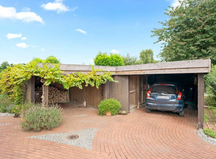Der Außenbereich wurde aufwendig gestaltet und zur Ergänzung des Carports wurde ein Schuppen gestaltet, der unter anderem das Brennholz beherbergt. Durch die beiden Terrassen haben Sie die Möglichkeit über viele Stunden die Sonne zu genießen. Insgesamt handelt es sich bei dieser Immobilie um eine besondere Gelegenheit in einer gefragten Lage mit vielen Möglichkeiten zur individuellen Nutzung.