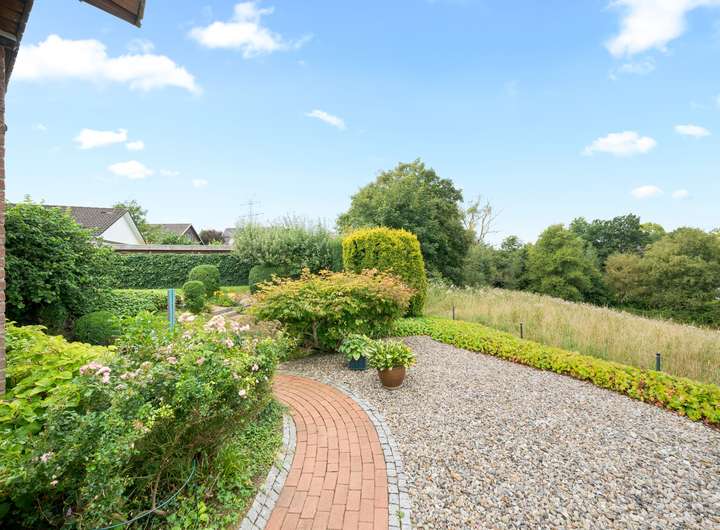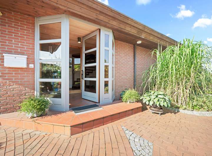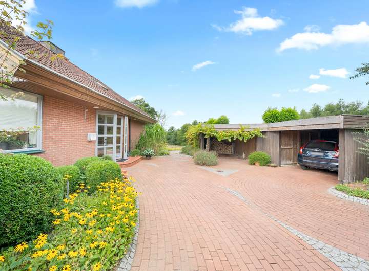 Angeboten wird ein attraktives Architektenhaus mit rund 195 m2 Wohnfläche in Mielkendorf. In einer ruhigen Sackgassenlage und mit freiem Blick präsentiert sich das 1985 erbaute Haus und wird ergänzt durch einen geschmackvoll gestalteten Außenbereich und die beiden Carport-Stellplätze.