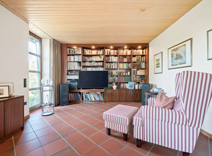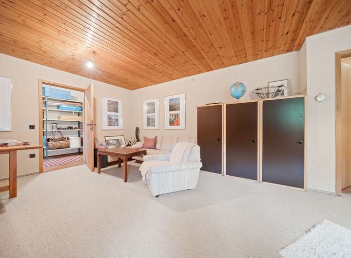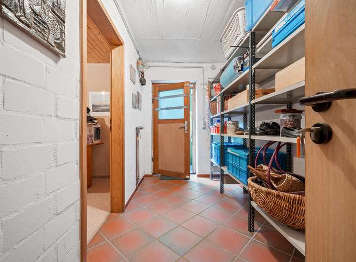 Das UG beherbergt zahlreiche weitere Räume, eine wohnraumtypische Deckenhöhe und einen Zugang über den rückwärtigen Terrassenbereich. Ein rund 26 m2 großer Raum könnte als Gäste-, Arbeits- oder Schlafbereich dienen und bietet Zugang zum daneben gelegenen Duschbad. Durch den Zugang dieser Räume von außen wäre auch eine autarke Nutzung vorstellbar. Zusätzlich befinden sich weitere Lagermöglichkeiten, eine Sauna mit separater Schwalldusche und die Heizung des Hauses im UG. Die Ölheizung von Buderus stammt aus dem Jahre 1995. Das rund 8 m2 große Öllager verfügt über drei Tanks.