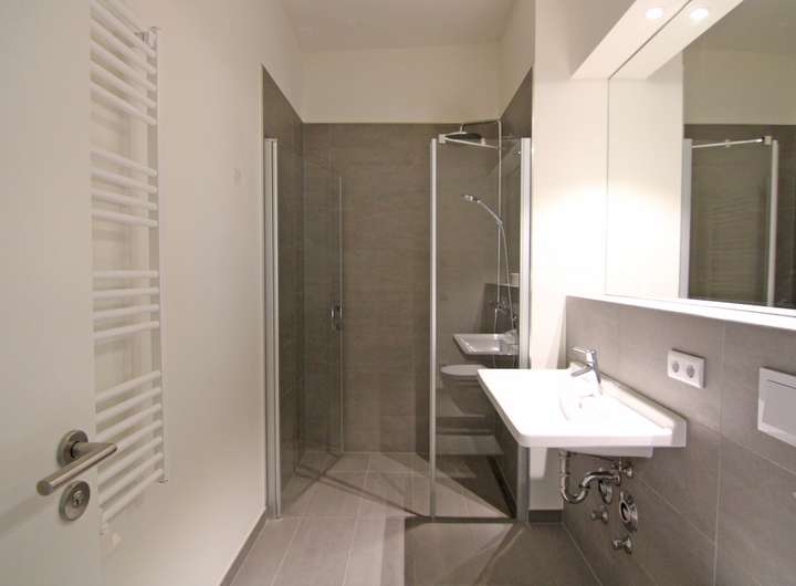 Diese Wohnung liegt im gut belichteten, sehr hellen 2.OG, ein Aufzug ist vorhanden. Die Wohnung wurde im Jahr 2020 komplett neu errichtet (Neubau) und überzeugt mit hohem Wohnkomfort. Der Grundriss überzeugt auf ganzer Linie: das Wohnzimmer ist gut unterteilt, hier wurde auch eine Einbauküche in offener Bauweise integriert. Die Einbauküche ist modern gehalten und bietet hohen Komfort. Die beiden Schlafzimmer haben angenehme Größen und sollten sich sehr gut nutzen lassen. Das Badezimmer zeigt eine moderne, ansprechende Fliesung und ist mit einer großen, bodentiefen Dusche versehen. Die hübsche Fliesung und die gelungene Aufteilung lassen das Badezimmer zu einem echten Wohlfühlbad werden. Die Beheizung in der Wohnung erfolgt über eine komfortable Fußbodenheizung.