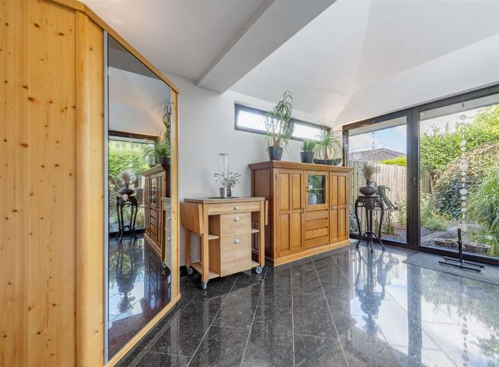 Das Erdgeschoss bietet insgesamt fünf Räume (Wohnbereich unterteilt in 2 Bereiche/Räume mit offenem Übergang), eine Küche, ein Gäste-WC sowie ein großzügiges Badezimmer mit Wanne und Dusche. Im Dachgeschoss stehen zwei weitere Zimmer, darunter das Hauptschlafzimmer, sowie ein großes Badezimmer en suite zur Verfügung. Der Keller ist praktisch unterteilt und verfügt neben dem Heizungs- und Tankraum über einen geräumigen Mehrzweckraum und einen Hauswirtschaftsbereich mit Platz für Waschmaschinen und Trockner.