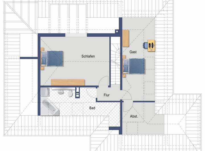 Dach einschl. Dachstuhl komplett neu (Eindeckung: Tonpfannen seidenmatt glänzend)