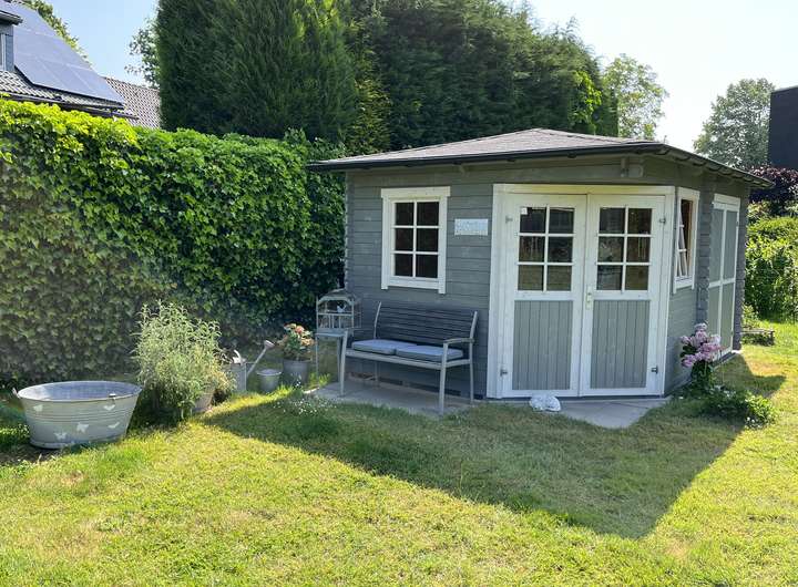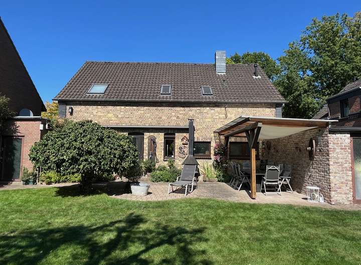 Umgeben von Gärten und großzügigen Häusern befindet sich dieses schöne, massiv gebaute Einfamilienhaus mit gepflegtem Garten, sowie einer Doppelgarage und einer weiteren Kleingarage.