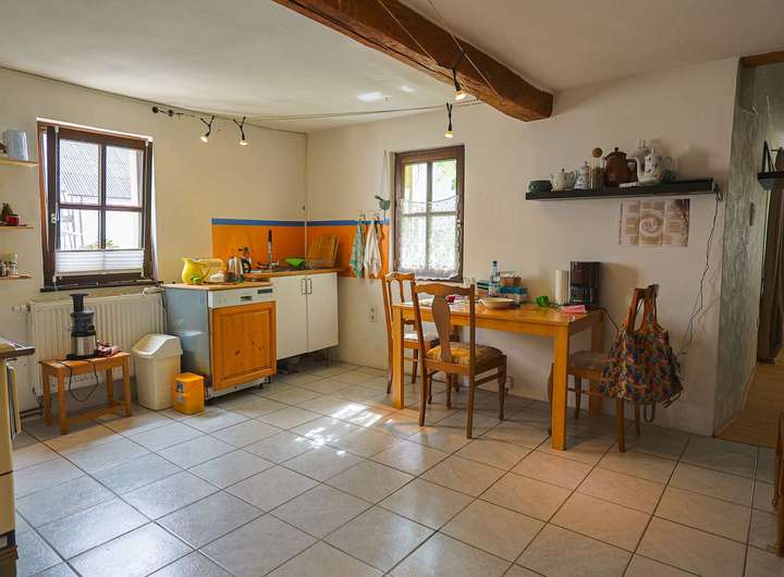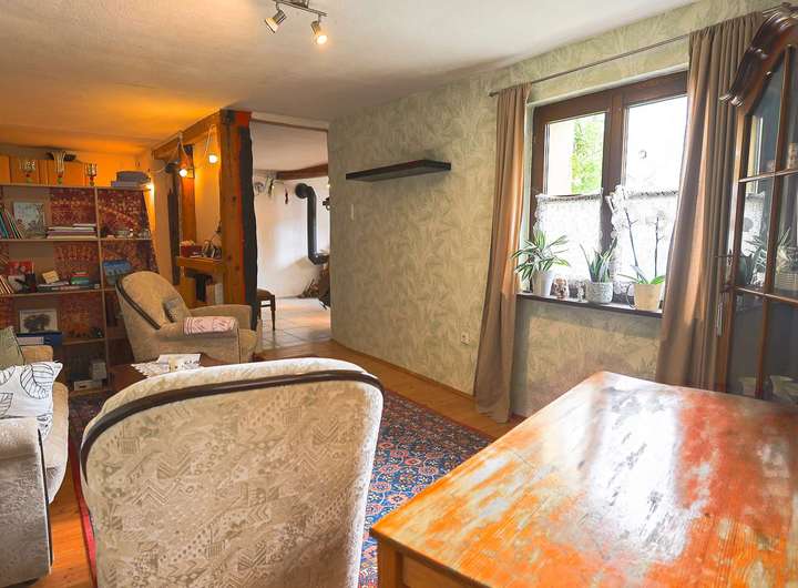 Dieses Fachwerkhaus aus dem Jahr 1890 mit angebauter und 1993 ausgebauter Scheune aus massiven Bruchsteinen vereint Charme mit großzügigem Raumangebot. Mit einer Gesamtwohnfläche von ca. 250 m² bietet die Immobilie vielfältige Nutzungsmöglichkeiten – vom großzügigen Familienwohnen bis zur Kombination mit einer separaten Einliegerwohnung.