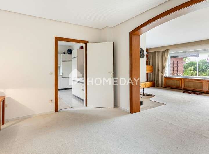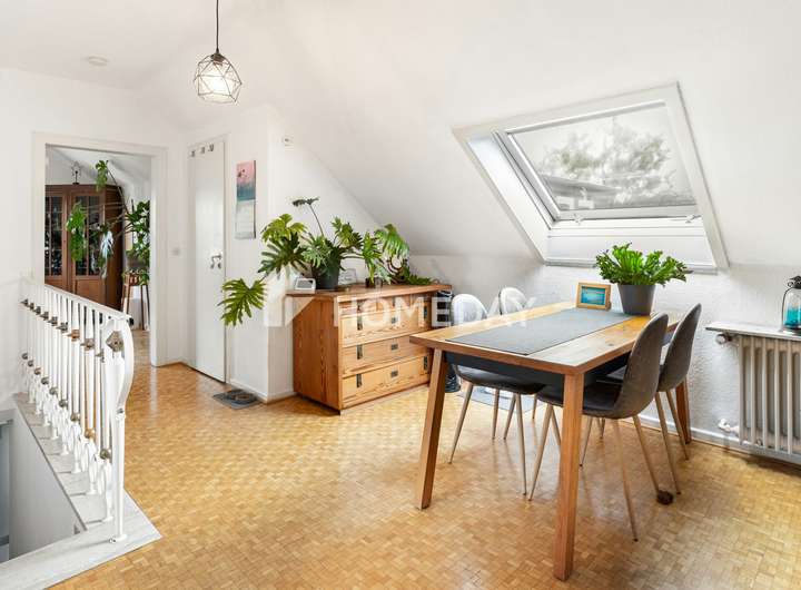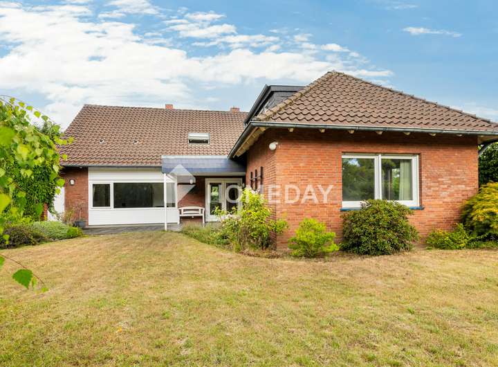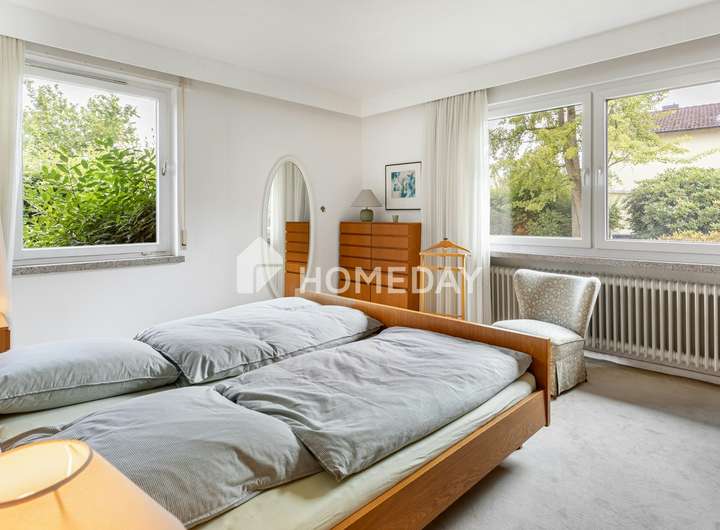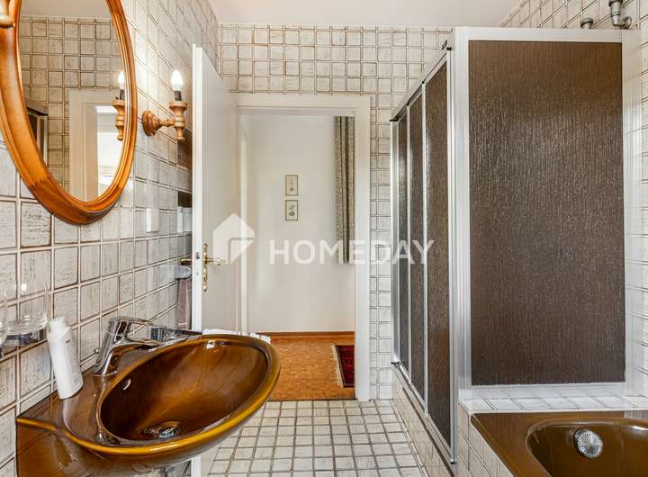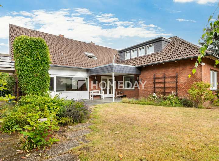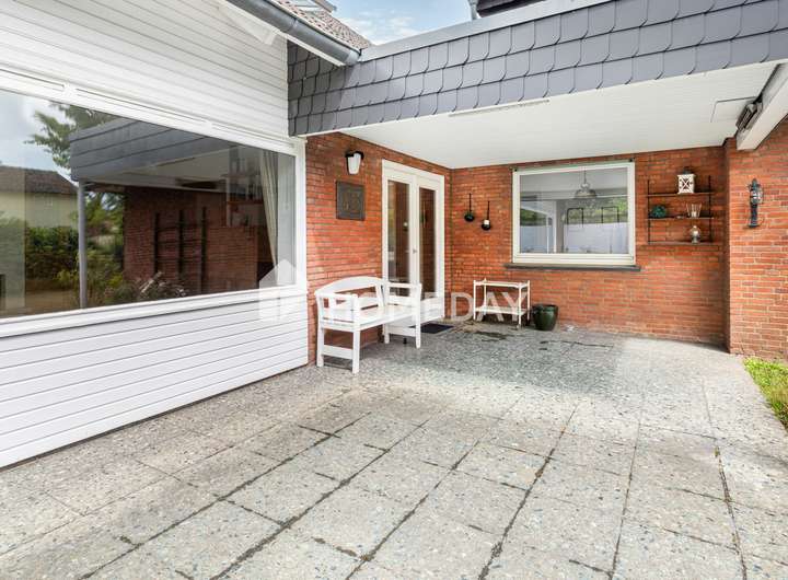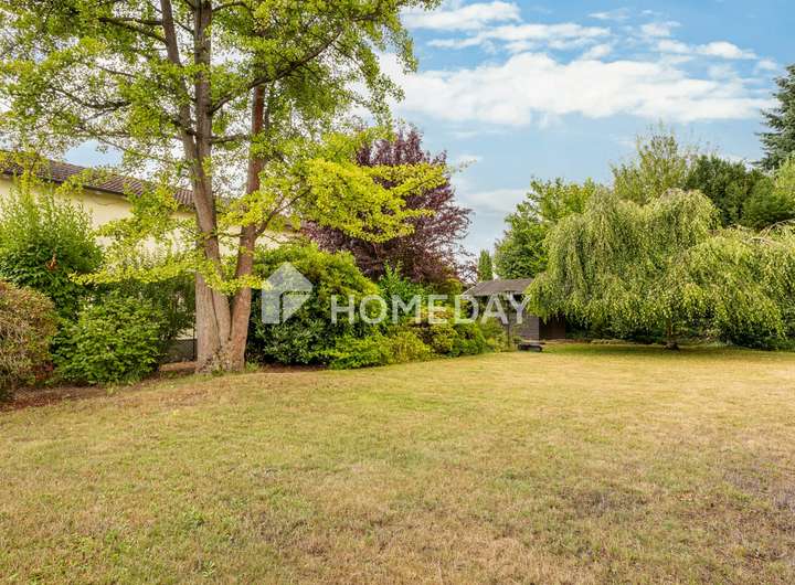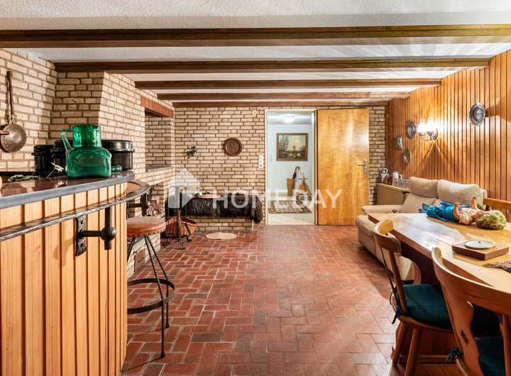 Willkommen in diesem großzügigen Zweifamilienhaus, das mit seinem gepflegten Erscheinungsbild und einer durchdachten Architektur überzeugt. Die im Jahr 1963 errichtete Immobilie präsentiert sich sowohl innen als auch außen in einem äußerst ansprechenden Zustand – der erste Eindruck wird durch liebevoll instand gehaltene Fassaden, klare Linien und ein stimmiges Gesamtbild bestätigt. Auf einem weitläufigen Grundstück mit rund 787 Quadratmetern Fläche entfaltet das Haus seine volle Wirkung: viel Platz, Ruhe und Privatsphäre in einem gewachsenen Wohnumfeld. Mit einer Gesamtwohnfläche von ca. 260 Quadratmetern, verteilt auf zwei Etagen und zwei autarke Wohneinheiten, bietet das Haus Raum für unterschiedlichste Lebenskonzepte – sei es als Mehrgenerationenhaus, zur Kombination von Wohnen und Arbeiten oder als Kapitalanlage. Insgesamt stehen sieben gut geschnittene Zimmer zur Verfügung, die sich durch Großzügigkeit, Helligkeit und klare Strukturen auszeichnen. Das Erdgeschoss überzeugt mit einem funktionalen und zugleich wohnlichen Grundriss, der den Wohn- und Schlafbereich klar voneinander trennt. Vom östlich gelegenen Haupteingang gelangt man über einen kleinen Vorflur mit Gästetoilette und wenigen Stufen in den zentralen Hauptflur. Linkerhand befindet sich das helle Wohnzimmer mit fließendem Übergang zum Essbereich und direktem Zugang zur überdachten Terrasse. Die angrenzende Küche ist sowohl vom Esszimmer als auch vom Flur aus erreichbar und bietet mit ihrer praktischen Aufteilung Platz für moderne Geräte. Ein praktischer Vorteil: Der direkte Zugang von der Küche zur Garage erleichtert den Alltag erheblich. Im rechten Erdgeschoss liegt der private Bereich mit einem hellen, südlich ausgerichteten Schlafzimmer und großen Fenstern. Direkt daneben liegt das geräumige Badezimmer mit Badewanne und Dusche. Ein weiteres Zimmer kann flexibel als Büro, Kinderzimmer oder Gästezimmer genutzt werden. Das Obergeschoss beherbergt eine eigenständige Wohneinheit, die über eine innenliegende Treppe erreichbar ist. Im Zentrum der Etage liegt ein offener Essbereich, der durch ein großzügiges Dachflächenfenster mit natürlichem Licht versorgt wird und als kommunikativer Mittelpunkt dient. Angrenzend daran liegt das Wohnzimmer mit hellem Parkettboden, großen Fenstern und direktem Zugang zum Balkon – mit Blick ins Grüne und idealer Ausrichtung für sonnige Abendstunden. Die angrenzende Küche ist kompakt, funktional ausgestattet und durch zwei Dachfenster ebenfalls angenehm belichtet. Ein modernes Duschbad mit WC ist zentral gelegen. Im südöstlichen Teil der Etage befindet sich das großzügige Schlafzimmer mit mehreren Fenstern, das viel Licht und Ruhe bietet. Ergänzt wird diese Wohneinheit durch drei praktische Abstellräume, die sich als Stauraum nutzen lassen. Ein weiteres Zimmer rundet das Raumangebot ab und eignet sich ideal als Kinderzimmer, Gäste- oder Arbeitszimmer. Der Außenbereich unterstreicht den gepflegten Gesamteindruck der Immobilie. Das Grundstück ist von einer dichten, blickgeschützten Hecke eingefasst und bietet dadurch viel Privatsphäre. Der Garten ist liebevoll gestaltet – mit weitläufigen Rasenflächen, Ziersträuchern und teils alten Baumbeständen. Ein gemütliches Gartenhaus aus Holz bietet zusätzlichen Stauraum für Gartengeräte, Fahrräder oder saisonale Möbel. Für Fahrzeuge stehen eine Garage sowie ein vorgelagerter Stellplatz zur Verfügung. Beheizt wird das Haus über eine Öl-Zentralheizung aus dem Jahr 2004. Zudem ist die Immobilie vollständig unterkellert und überzeugt auch hier mit einer durchdachten Raumaufteilung: Im linken Bereich lädt eine Sauna mit angrenzender Toilette zum Entspannen ein, während der großzügige Partykeller den idealen Rahmen für gesellige Abende bietet. Wir laden Sie herzlich ein, sich von der Immobilie bei einer persönlichen Besichtigung begeistern zu lassen.