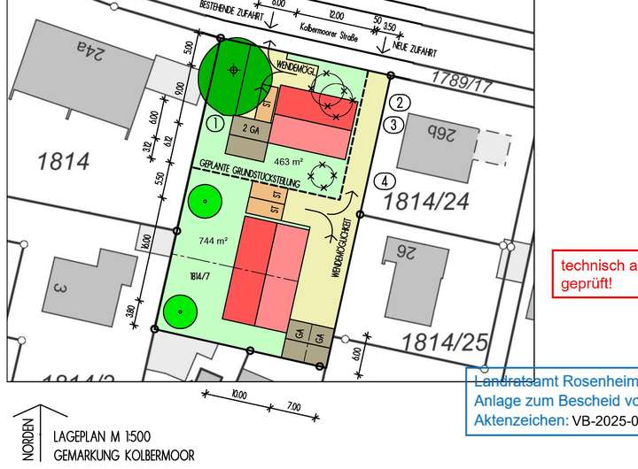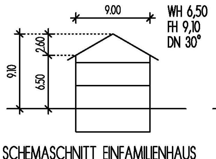 Im genehmigten Vorbescheid wurde eine Wandhöhe von 6,5 m und die Firsthöhe von 9,1 m festgelegt.