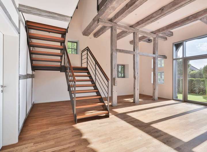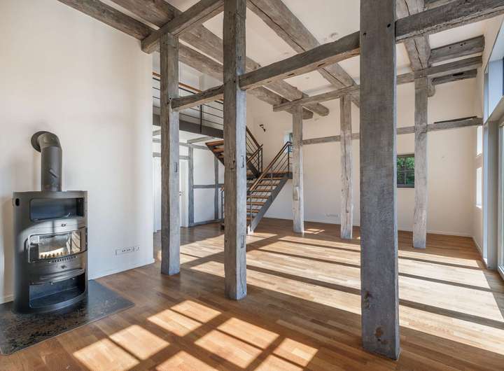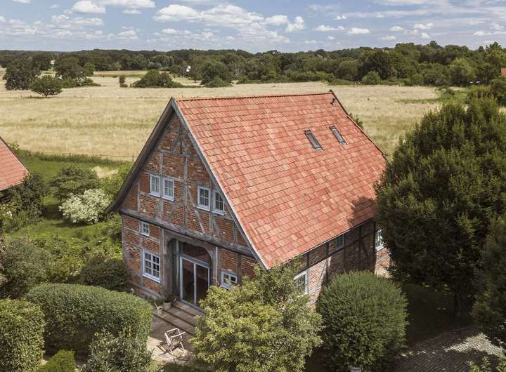 Der historische, denkmalgeschützte, ca. 1752 errichtete Vierständerbau war eines der ältesten Fachwerkgebäude in Gehrden. Das Gebäude wurde ca. 1998 bis 2000 an seinen heutigen Standort verbracht und nach dem Stand der Technik wiederaufgebaut, modernisiert und präsentiert sich heute mit seiner hochwertigen Ausstattung als gelungene Kombination aus traditionellem Fachwerk und modernem Wohnambiente. Eingebettet in ein Fachwerkhausensemble, nahe des Landschaftsschutzgebietes und in direkter Feldrandlage sowie an einer Privatstraße gelegen, bietet das Objekt Ruhe und ländliche Idylle in begehrter Wohnlage. Über die seitliche Zuwegung gelangt man zu dem Hauseingang und in das Erdgeschoss mit modernem Gäste-WC und Hauswirtschaftsraum mit separatem Technikraum. Hier befindet sich die state-of-the-art H2-ready Gasbrennwertheizung. Die Küche bietet den direkten Zugang in den Garten und einen sehr schönen Blick in das Landschaftsschutzgebiet und die Marienkirche. Als Highlight ist das mit stilvollem Eichenholzparkett ausgelegte, über anderthalb Etagen reichende Wohnzimmer mit offener Balkenkonstruktion, integrierten Deckenspots, freistehender Eichenholztreppe und Kaminofen hervorzuheben. Das ehemalige Scheunentor wurde durch ein Glaselement mit doppelflügliger Terrassentür ersetzt, wodurch der Raum sehr hell und freundlich erscheint. Im 1. Obergeschoss befindet sich das moderne Badezimmer mit freistehender Badewanne, bodentiefer Dusche und einem Doppelwaschtisch sowie das Elternschlafzimmer mit angrenzendem Ankleidebereich. Eine halbe Etage höher liegen die beiden nach Westen ausgerichteten Kinderzimmer. Das Hobby-/Gästezimmer oder Büro liegt ebenfalls eine halbe Etage höher im Spitzboden des Hauses. Der pflegeleicht angelegte Garten und die nach Südosten ausgerichtete Terrasse bieten viel Privatsphäre, Erholung und einen spektakulären Blick in die Natur. Eine weitere, mit Sandsteinpflaster ausgelegte und nach Südwesten gelegene Terrasse sowie zwei Stellplätze mit einer Wallbox runden dieses exklusive Angebot ab.