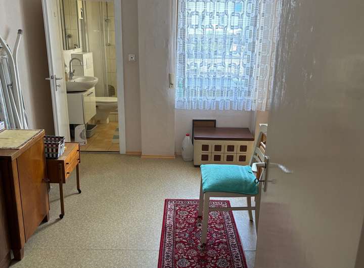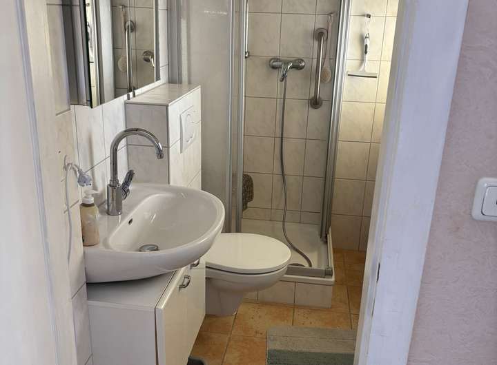 Über die im Jahr 1998 erneuerte Treppe gelangen Sie in das Obergeschoss. Hier stehen Ihnen ein Schlafzimmer, ein Kinderzimmer sowie ein Badezimmer mit Dusche zur Verfügung.
