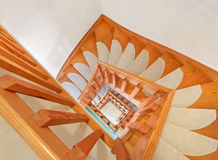 Die Außentreppe führt zu einer großzügigen Terrasse, die mit einem kleinen Garten harmonisch ergänzt wird. Dank der Süd-Ausrichtung können Sie hier sonnige Stunden genießen. Ein idealer Ort, um den Tag ausklingen zu lassen.