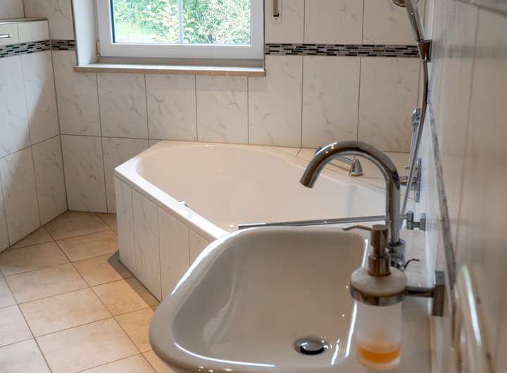 Die Immobilie bietet eine gehobene Ausstattung mit hochwertigen Materialien und moderner Technik. Im Obergeschoss ist eine voll ausgestattete Einbauküche vorhanden, die im Kaufpreis enthalten ist. Die Badezimmer verfügen über Badewanne und Dusche; zusätzlich steht ein separates Gäste-WC zur Verfügung. Edle Parkett- und Fliesenböden unterstreichen den hochwertigen Wohnstil. Sämtliche Fenster sind mit Rollläden versehen und bieten Komfort sowie Sichtschutz.